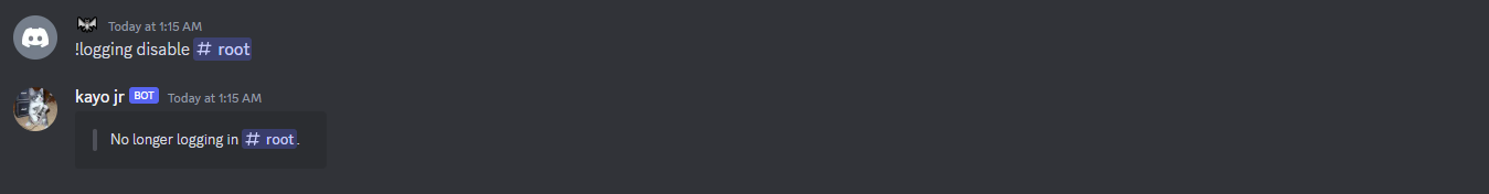 This operates differently from ;logging enable; it only requires a channel argument and removes all enabled logs for that specific channel.